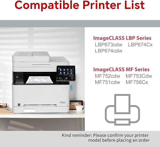 - Compatible Printers: Canon 069H Black Toner Cartridge works with multiple Canon imageCLASS models including LBP673Cdw, LBP674Cx, LBP674Cdw, MF751Cdw, MF752Cdw, MF753Cdw, MF754Cdw, MF755Cdw, and MF756Cx