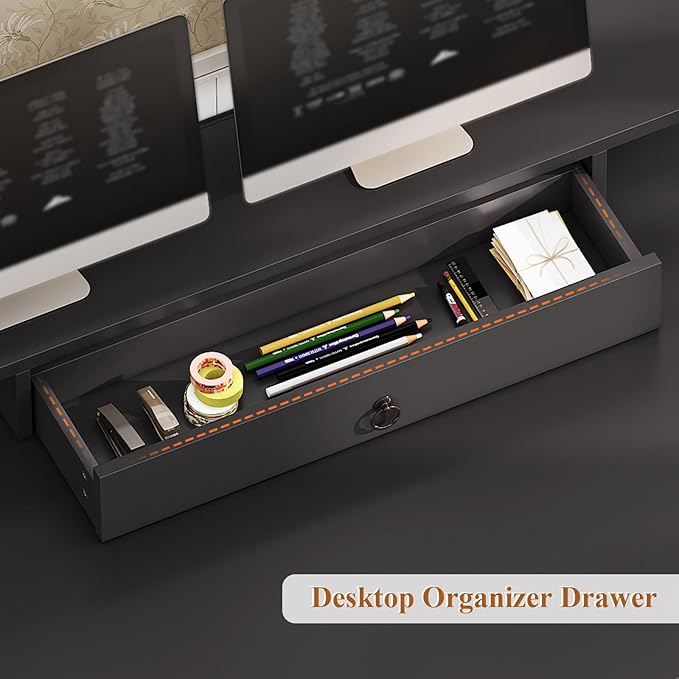 - 【Considerate Monitor Stand】This executive office desk features an elevated monitor stand that raises your screen to eye level, helping you reduce neck and spine pressure during long office or gaming hours. Plus, the compartment underneath offers extra storage to keep your desktop tidy.