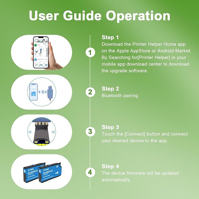 - 【Package Contents】: 2 X 952XL cyan ink cartridge, total compatible 952 xl cyan ink cartridges for hp printers 2 Pack + FREE Chip Upgrader – Enjoy 60% Savings, No More Firmware Blocks!