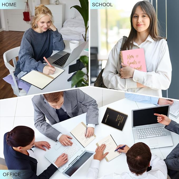 - *Excellent Quality* These notebooks are all made of sturdy double spiral binding, and the hard cover is both waterproof and wear-resistant. They can be turned 360 degrees without creases. Even if a single page is torn off, it will not affect other papers. The inner pages are beige to prevent visual fatigue. There are no lines, so you can write and draw as you like.