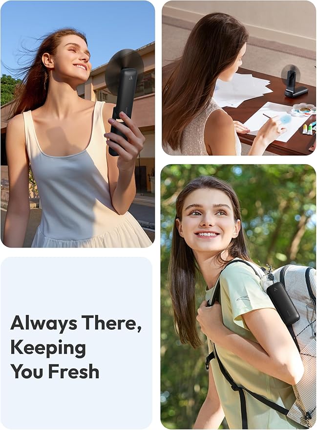 - Handheld & Desktop Versatility: Foldable Pocket Fan Transition seamlessly between handheld portability and a stable desktop mode. The foldable design adapts to any setting, making it perfect for work, travel, or outdoor relaxation