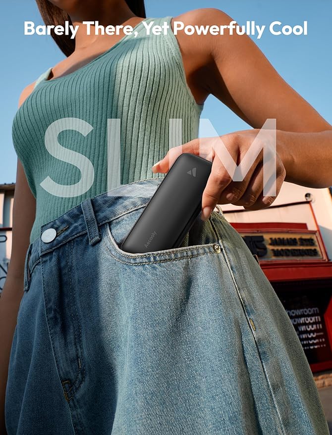 - Slim & Elegant Design: Aecooly Slim Handheld Fan designed for ultimate portability, this fan features a remarkably slim profile and lightweight build. Its sleek and compact form fits effortlessly into your hand, bag, or pocket, combining practicality with modern aesthetics