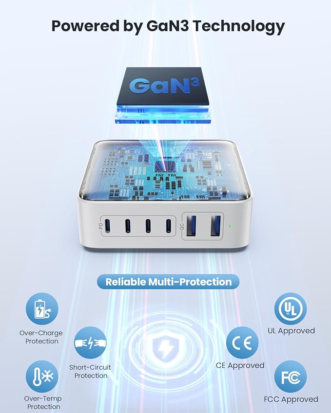 ![USB C Charger Block 200W[2025 Upgraded] GaN III 6 Port Fast Charging Station Hub,PD 65W USB C Laptop Charger Compatible with MacBook Pro/Air,iPad,iPhone 16/15,Galaxy S23/S24 Steam Deck Dell XPS etc](http://heyofficemates.com/cdn/shop/files/61GNWx7hnnL._AC_SY879.jpg?v=1759575381&width=1445)