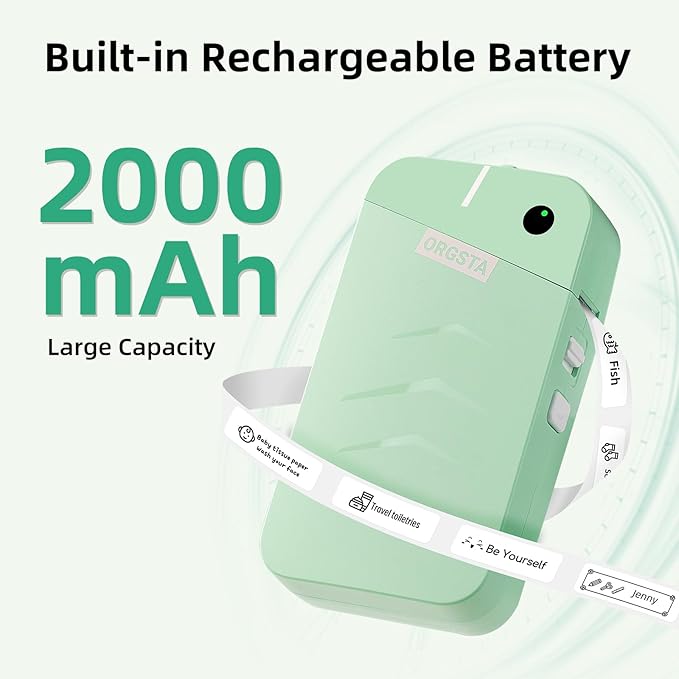 - High-Quality Printing: The ORGSTA label maker utilizes direct thermal printing technology and offers 203 DPI high-resolution printing, enjoy high-definition printing without the need for ink or toner; Laminated labels are clear, waterproof, oil-proof, scratch-resistant, and easy to tear, leaving no residue after removal
