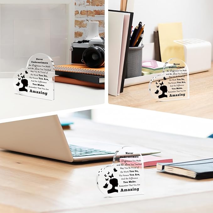 Inspirational Gifts for Women Friends Desk Decor for Office Coworker Appreciation Desk Sign Retirement Leaving Going Away Presents New Job Promotion Gifts for Women Office Acrylic Heart Keepsake