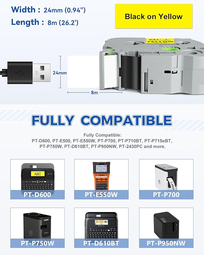 - Compatible for Brother Tze 24mm Label Makers: PTD610BT, PTD610BTVP, PTD600, PTP700, PTP710BT, PTE550W, PTP750W, PTE500, PTH500, PTP715eBT, PTD800W, PTE800W, PTP900, PTP900W, PTP950NW, PTP910BT