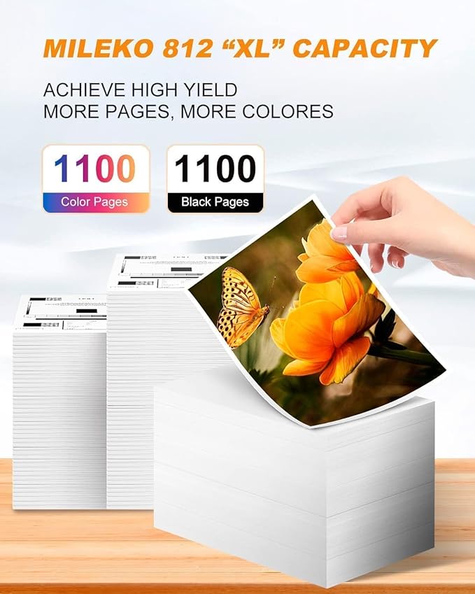 - 5.MILEKO 812xl ink cartridge epson replacements for epson 812xl 812 xl for epson wf-7840 ink cartridges undergoes a strict experiment to ensure crisp black text and vibrant color image.