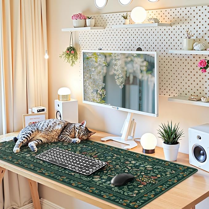 - Extended Dorm Desk Cover Mat Size: Large desk pad mat's measure: 35.4 x 15.7 inches. The adorable keyboard and mouse pad is large enough to have a mouse, gaming keyboard, and other desk items Just immerse into your work or games. It's a good desk skirts for teacher desk