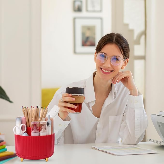 - Practical Choice: The rotating pen holder combines practicality and decoration. It keeps your workspace tidy by organizing pens, pencils, and small items, while its stylish design adds a decorative touch, making it both functional and visually appealing