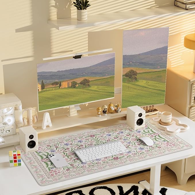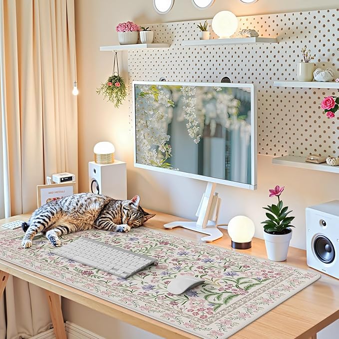 - Extended Dorm Desk Cover Mat Size: Large desk pad mat's measure: 35.4 x 15.7 inches. The adorable keyboard and mouse pad is large enough to have a mouse, gaming keyboard, and other desk items Just immerse into your work or games. It's a good desk skirts for teacher desk