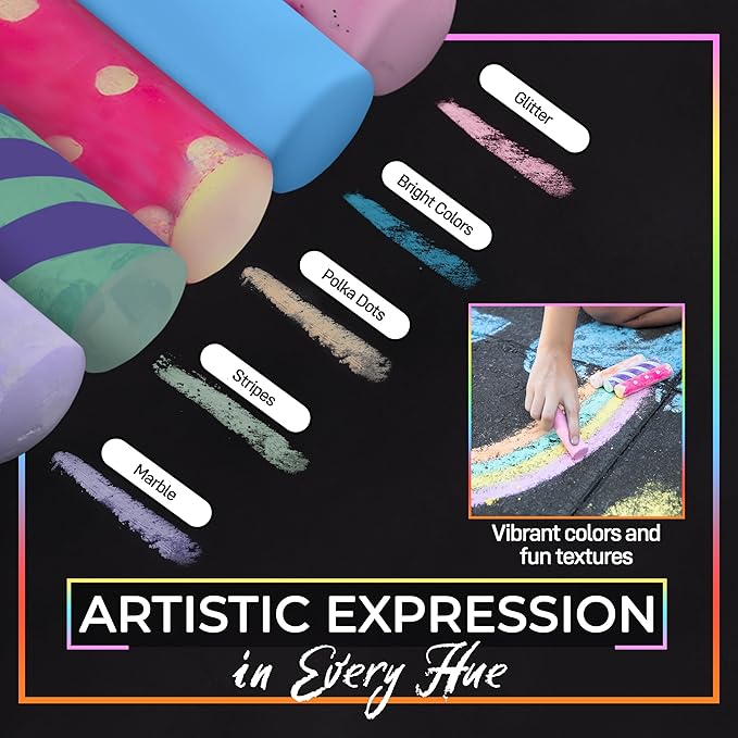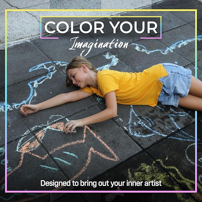 - Fun Chalk For Kids: Our premium non toxic sidewalk chalk is just what kids need for creative fun! Less dust means less mess, so cleaning up concrete or asphalt is easy. Try our glow-in-the-dark, neon chalk for extra fun on sunny days. This sidewalk chalk for kids bulk pack is perfect for creating festive scenes, though not for stucco surfaces