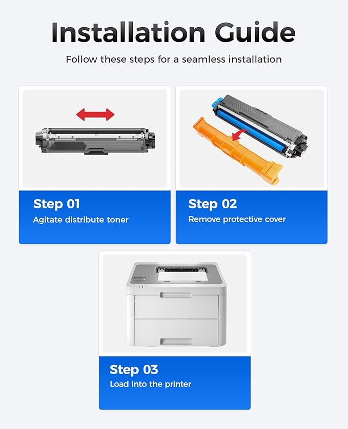 - The latest chip version: The JCTONER toner cartridges are equipped with the latest version of built-in chips, ensuring perfect compatibility between each toner cartridge and the printer. This enables you to print efficiently while maintaining stability and reliability, making installation convenient without the need for manual adjustments. All JCTONER toner cartridges have undergone strict quality testing and have obtained ISO9001 certification. High-quality toner cartridges can meet the demand for high printing volume. The fine toner ensures clear and stain-free printing results and extends the lifespan of the printer. You can purchase with confidence.