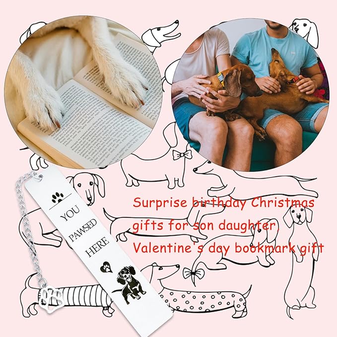 - Cute Dachshund Bookmark for Book Lover: Here's to inspiring, supporting, and enhancing the joy of turning the page. "YOU PAWSED HERE", funny bookmark with dog paw pendant, the best gift for book lover, dachshund dog lover, dog owner. Cute dachshund dog bookmark gifts for dog dad, dog mom, pet lover. Bookmarks gifts for avid readers, bookworm, book fanatic, book addict, nerds, bookish