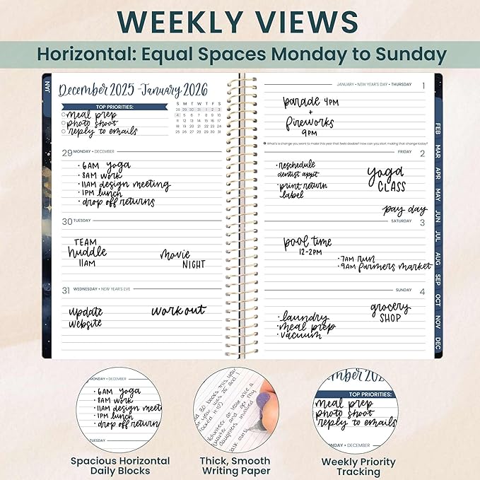 - WEEKLY & MONTHLY LAYOUT: This day planner features two-page monthly planner spreads and horizontal weekly layouts, running from January 2026 through December 2026. Perfect for tracking your tasks and appointments.