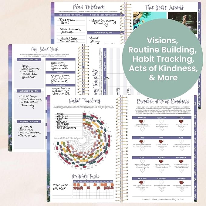 - THE ULTIMATE TOOL: More than just a calendar—this planner includes wellness and life management tools like a habit tracker, mission statement prompt, vision board space, budget planning pages, weekly task templates, 16 lined note pages, and more.