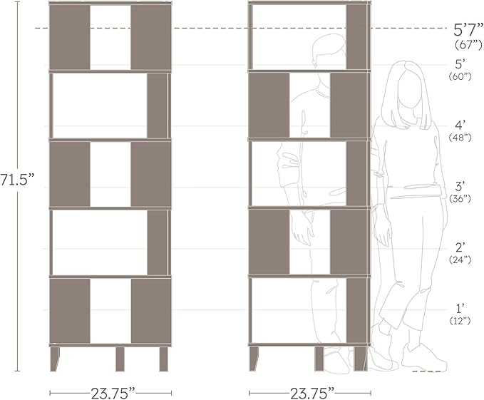 - ASSEMBLED DIMENSIONS & WEIGHT: Corner Book Shelf 23.75"D x 23.75"W x 71.5"H, Total weight - 59.50 lbs., All pieces arrive ready to assemble in 1 Box