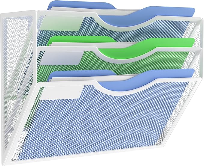 Kuntine.B Wall File Organizer Office Hanging Magazine Holder Wall File Organizer for Office Home (White, 3 Tier)