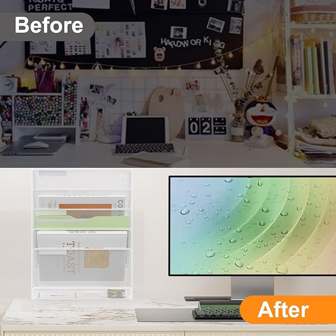 - Wall mounted file holder comes with mounting screws that it can be easily mounted on the wall, board or door cabinet, etc.
