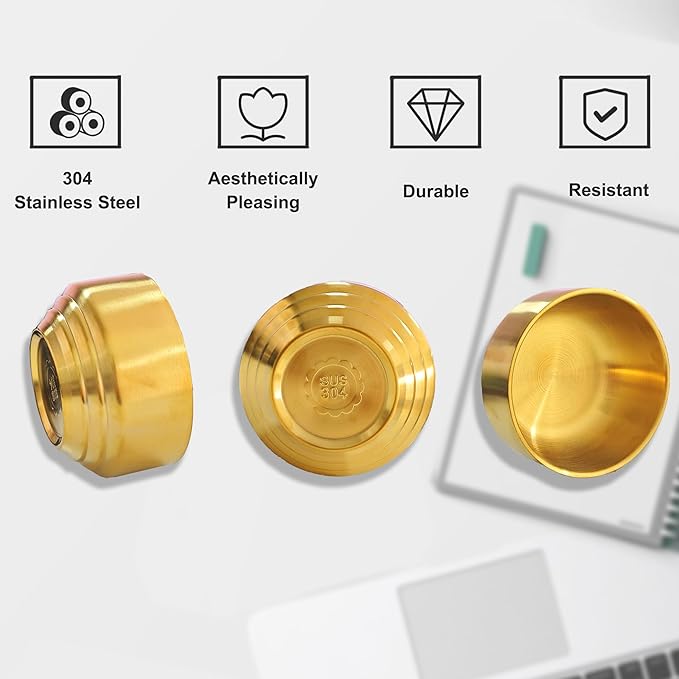 Paper Clip Holder & Organizer - 2-Pack Metal Desk Bowls for Office Accessories, Holds Binder Clips, Paper Clips & Small Parts | Space-Saving Desktop Organizer (Gold)