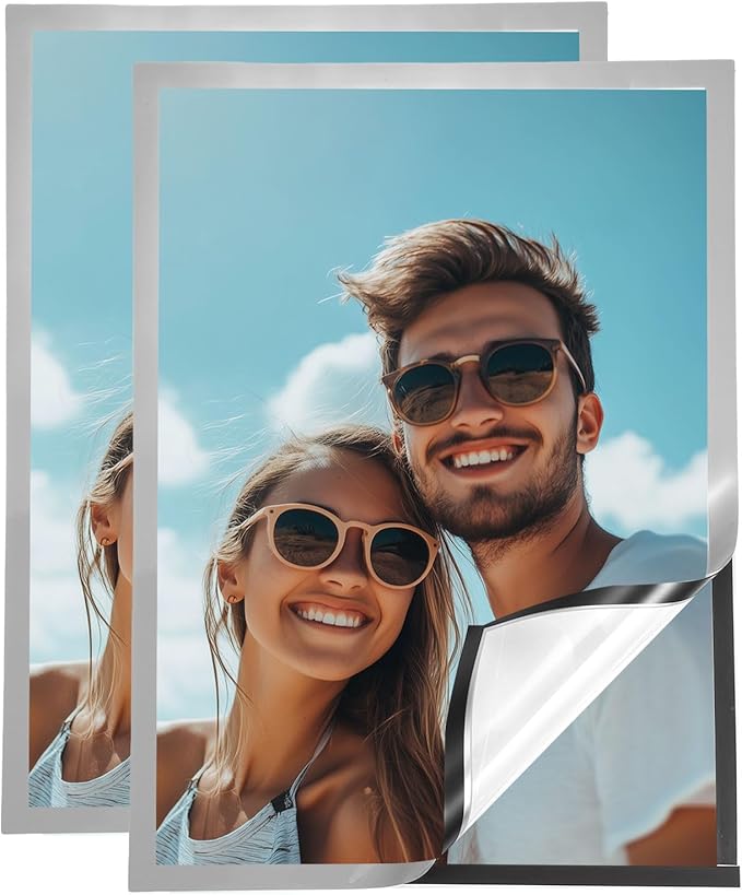 - Self-adhesive and No Drilling Required: This magnetic photo frame comes with an adhesive on the back, peel off the protective film from the self-adhesive backing, and then press the sign holder firmly onto the desired surface, easy to replace, it can be attached to any smooth, solid surface, such as refrigerators, glass, doors, wooden boards, compartments, tiles, etc
