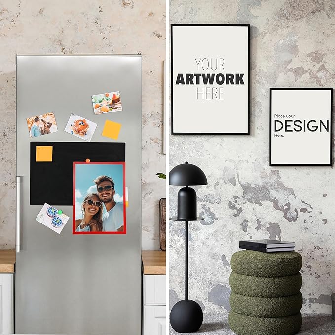 - Self-adhesive and No Drilling Required: This magnetic photo frame comes with an adhesive on the back, peel off the protective film from the self-adhesive backing, and then press the sign holder firmly onto the desired surface, easy to replace, it can be attached to any smooth, solid surface, such as refrigerators, glass, doors, wooden boards, compartments, tiles, etc