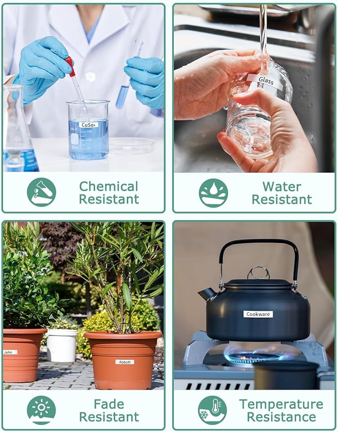 - Applications: The laminated 12mm 0.47 white tape is suitable for indoor or outdoor use. Such as home, office, school, industry, warehouse, chemistry laboratory, hotel, and hospital. It is perfect for labeling gifts, kitchen seasonings, files, folders, shelves, and books