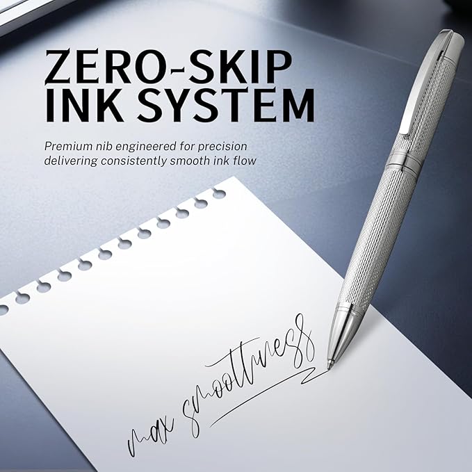 - 【Premium Metal】Crafted with premium metal forging, the silver pen deliver unmatched durability—resisting deformation, fading, and everyday wear. The reinforced anti-drop and pressure-resistant design means fewer replacements and more reliability