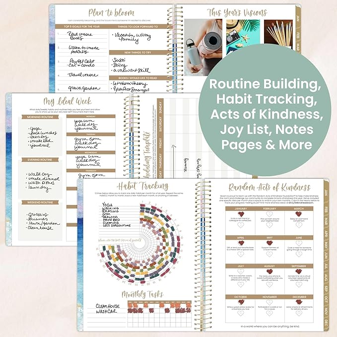 - THOUGHTFUL PRODUCTIVITY TOOLS: This goal-setting planner is packed with features to keep you focused and motivated like a personal mission statement prompt, yearly goal-setting worksheet, vision board, budget log, scheduling templates, 12 note pages, motivational quotes, and monthly challenges.