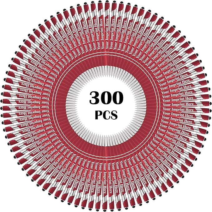 Up to 500 Pcs Custom Pens Bulk | Rainbow of Colors | Soft-Touch Metal Black Ink Personalized with Name or Message (Red, 300 pcs)