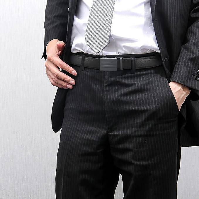 - FOR EXACT FIT - Rachette belt allows for up to 1/5" adjustments for perfect fit everywhere. The click belt features an easily removable buckle that allows you to cut the dress belt to your ideal size.