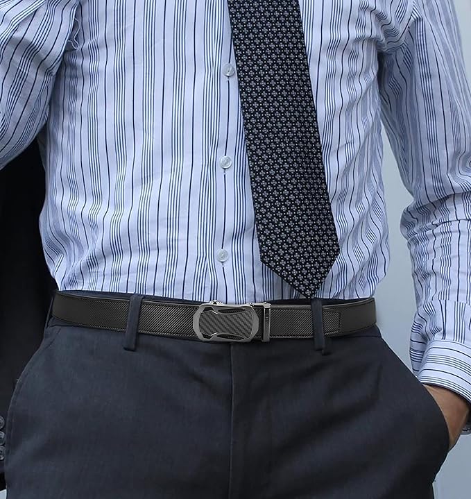• FOR EXACT FIT - Rachette belt allows for up to 1/5" adjustments for perfect fit everywhere. The click belt features an easily removable buckle that allows you to cut the dress belt to your ideal size.
