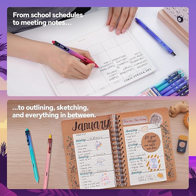- 8-Pack Gel Pen Set: Experience precision every time with 0.5mm fine point gel pens. Featuring bold gradient barrels, and reliable black ink—perfect for everyday writing and creative projects.