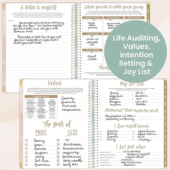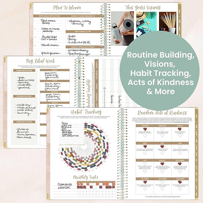 - THOUGHTFULLY DESIGNED FOR PERSONAL GROWTH: This agenda organizer includes life coaching worksheets and tools to help you bloom: a goal-setting page, weekly scheduling templates, annual habit tracker, monthly bill tracker, 12 note pages, inspirational quotes, monthly challenges, and more.