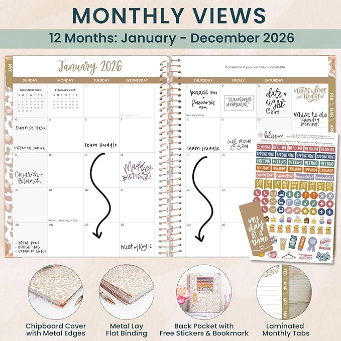 bloom daily planners HARDCOVER 2026 Planner (January to December) - 8.5” x 11” Weekly & Monthly Dated Agenda Organizer Book with Stickers & Tabs - Tan Leopard