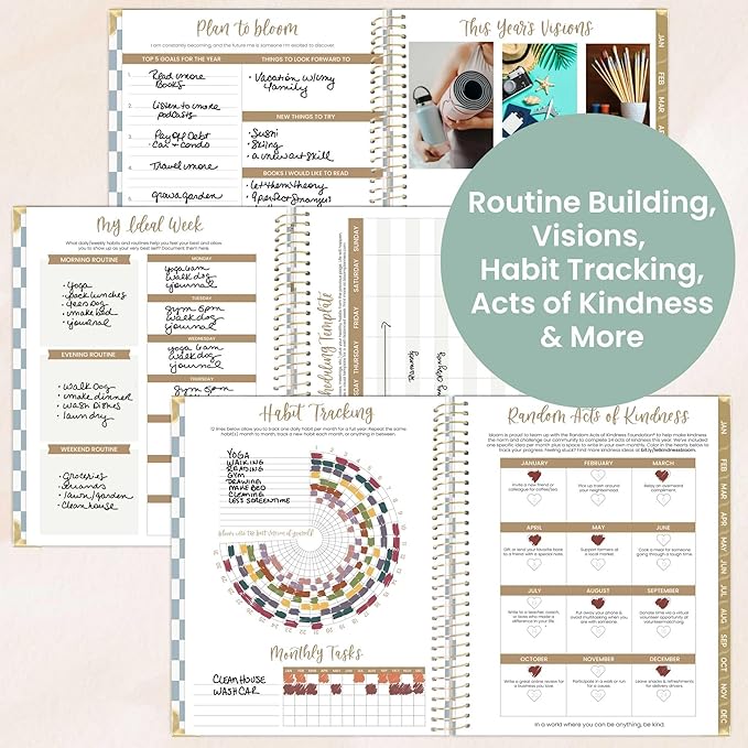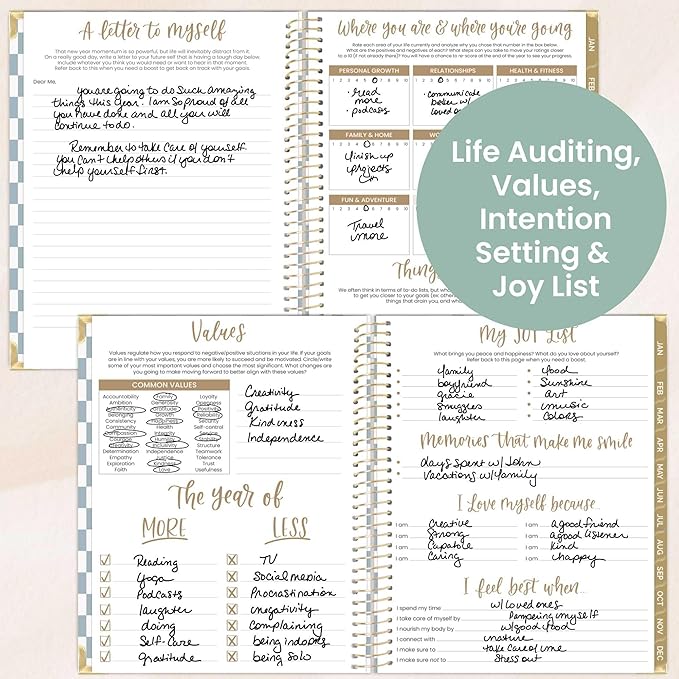 - EXTRA TOOLS TO HELP YOU STAY MOTIVATED: More than just a weekly planner or monthly planner, this agenda book includes life-coaching worksheets to keep you inspired all year. Features a personal mission statement page, annual goal-setting page, habit tracker, vision board, budget log, scheduling templates, 12 notes pages, uplifting quotes, monthly challenges, and more.