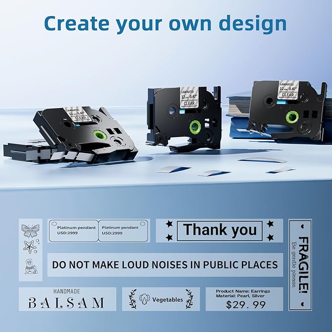 - 【Crystal Clear Tape - 12mm x 8m】Compatible with Brother P-touch clear label maker tape TZe-131, TZE131, TZ131, TZ-131, offering a professional, invisible labeling solution. Dimensions per roll: 12mm (1/2 inch) wide x 8m (26.2 ft) long.