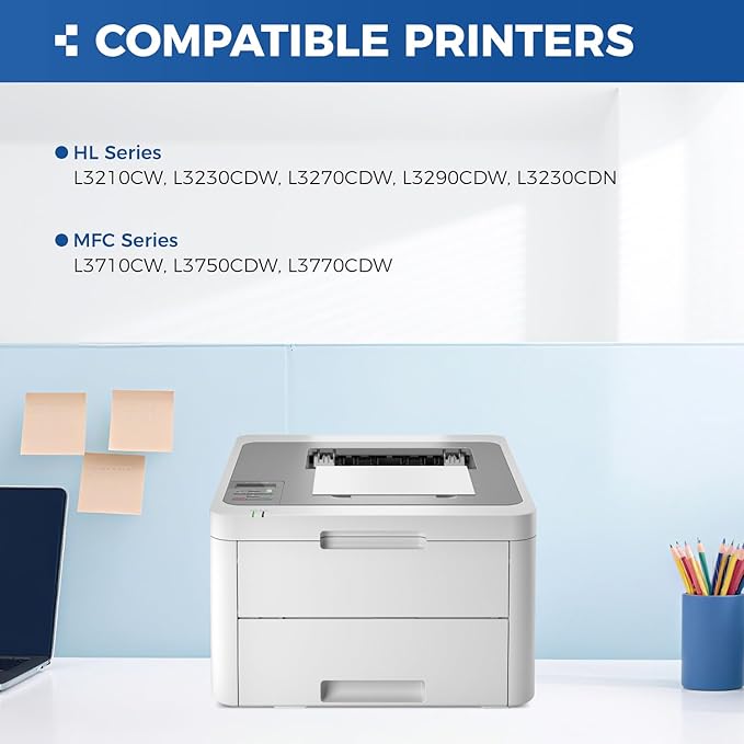 - Compatible Printer: Compatible with Brother HL-L3210CW, HL-L3230CDW, HL-L3270CDW, HL-L3290CDW, HL-L3230CDN, MFC-L3710CW, MFC-L3750CDW, MFC-L3770CDW (Please check that your printer model matches the printer model of this toner cartridge before placing an order).