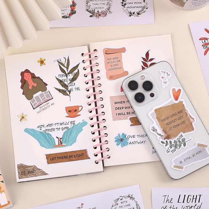 - NICE ADHESIVE & EASY TO REMOVE: With good adhesive, the waterproof bible journaling supplies stickers will not curl up and fall off. They can be also moved without any effort and no adhesive residue on the surfaces after removal.