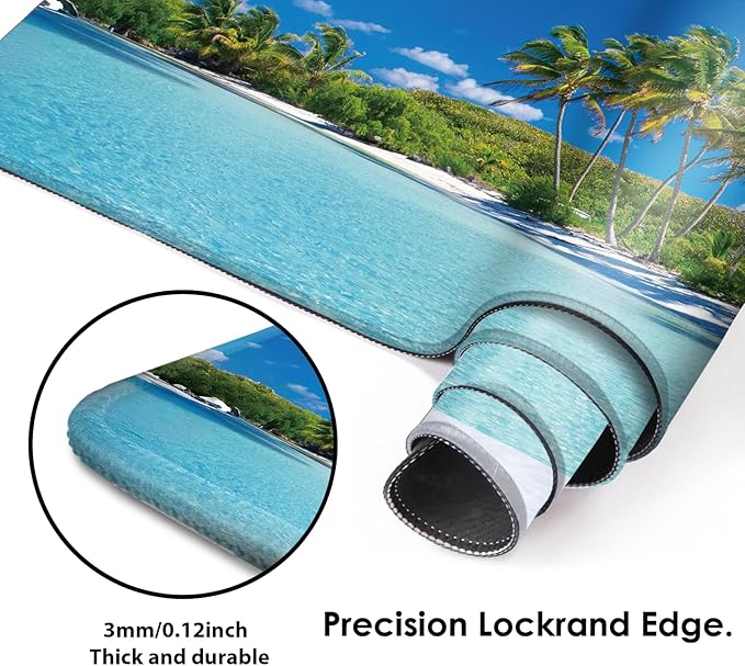 Galdas Gaming Mouse Pad XXL XL Large Long Extended Big Mousepad Non-Slip Rubber Keyboard Mouse Pad with Stitched Edges for Laptop Home Office (31.5x11.8x0.08 Inch) … (Beach 2025)