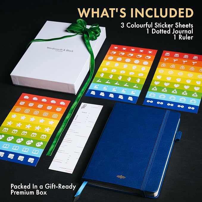Wordsworth & Black A5 Bullet Dotted Journal 216 Dotted Pages, Hardcover Grid Dot Leather, 120 GSM Paper, Journaling Notebook for Work & Sketching, Journals for Women, Men - Gifts Box Included Blue