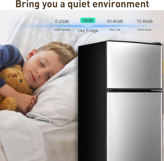 - 【Whisper-Quiet & Energy-Efficient】Experience tranquility and efficiency with this dorm fridge. Its innovative design ensures silent operation, minimizing noise when accessing the fridge. Advanced noise-reducing components provide a peaceful home environment. Additionally, its low energy consumption makes it an ideal choice for those who prioritize sustainability and energy efficiency.