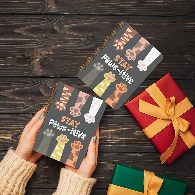 2 Pcs Cute Pet Spiral Notebook - Stay Pawsitive, Cats Claw Notebook College Ruled, Journaling for Work, Note Books Home College Office Supplies Gatos Cat Lover Gifts for Girls Teens Colleagues