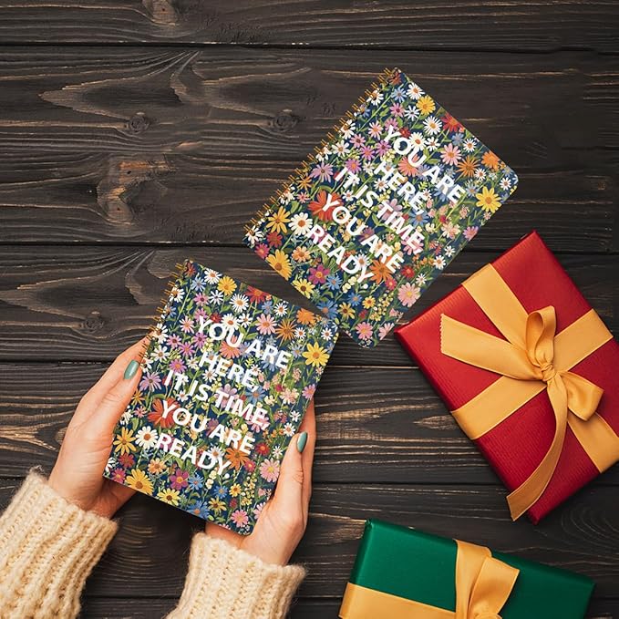 2 Pcs Inspirational Spiral Notebook - You are here, it is time, you are ready. Journaling for Work, Pretty Motivation Note Books College Study Office Supplies Inspirational Gifts for Women, Friend