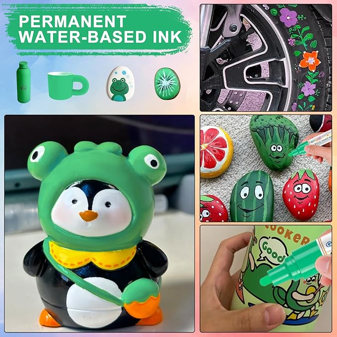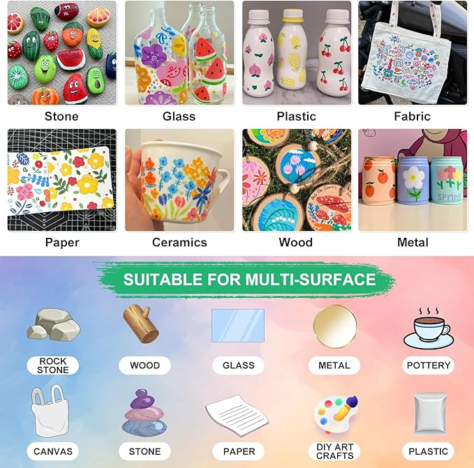 - Multi-Surface Use: This acrylic paint pen has a strong covering power, perfect for a variety of surfaces including stone, ceramic, glass, wood, fabric, metal, plastic, and more. Great for crafting, labeling, and adding creative touches to sneakers, pottery, and terracotta