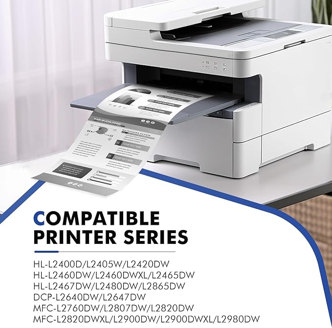 - Compatible for Brother HL-L2400D HL-L2405W HL-L2460DW HL-L2460DWXL HL-L2865DW HL-L2480DW DCP-L2640DW MFC-L2807DW MFC-L2820DW MFC-L2820DWXL Printer