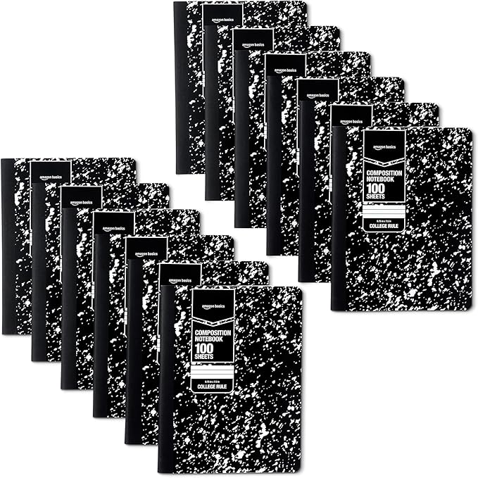 Amazon Basics Composition Notebook, College Ruled, 100 Sheets, 9.75" x 7.5", 12 pack, Marble Black