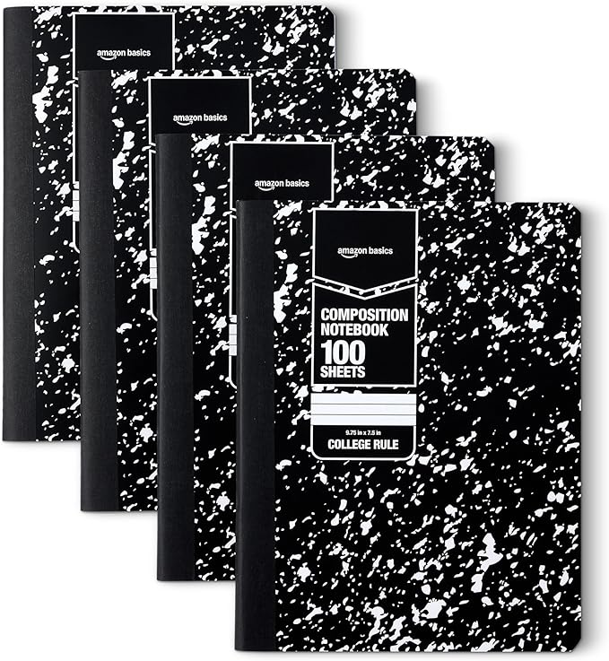 Amazon Basics Composition Notebook, College Ruled, 100 Sheets, 9.75" x 7.5", 4 pack, Marble Black