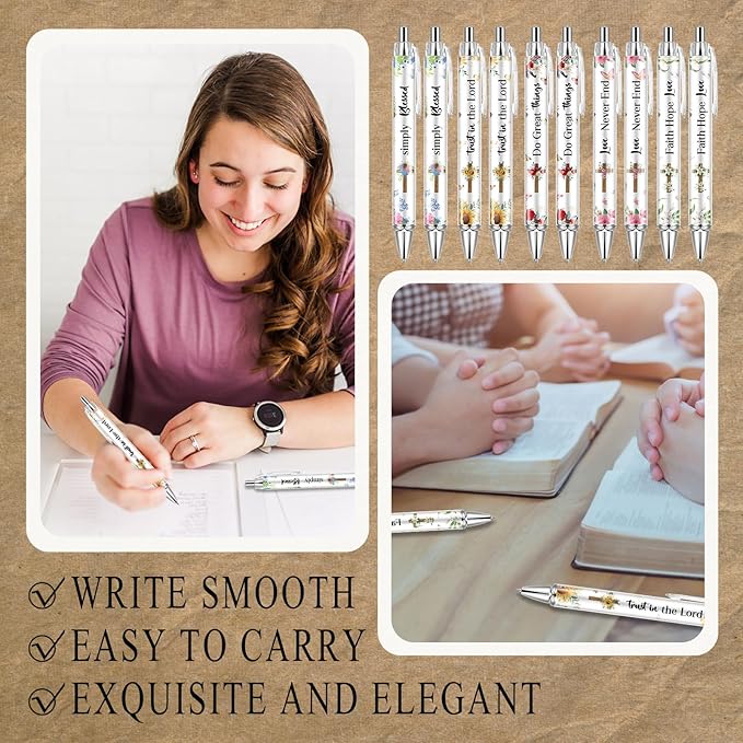 - Quality and Reliable Material: the floral bible verse decorative pens are made of quality metal and plastic material, reliable and strong, will not easy to break, fade, rust or deform; The ink is smooth to write, giving you a comfortable using experience