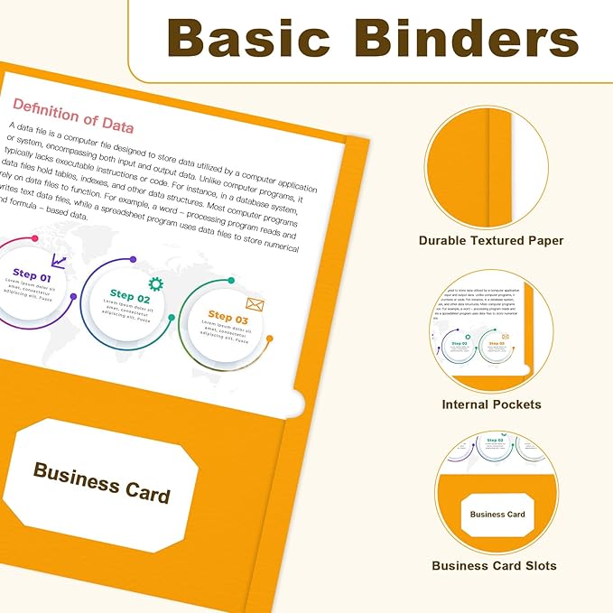 - Customizable Cover: The folder is made of thick paper with no plastic wrapping. Labels, decorations or text can be added to make your folder more personalized and easy to identify.