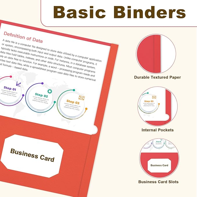 - Customizable Cover: The folder is made of thick paper with no plastic wrapping. Labels, decorations or text can be added to make your folder more personalized and easy to identify.